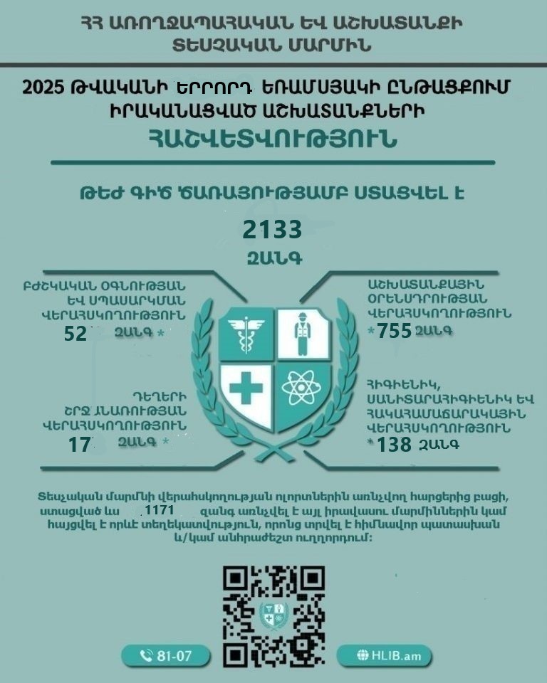 2025 թվականի երրորդ եռամսյակում ՀՀ առողջապահական և աշխատանքի տեսչական մարմնի Թեժ գիծ ծառայության հեռախոսահամարով ստացված զանգերի վերաբերյալ ՀԱՇՎԵՏՎՈՒԹՅՈՒՆ Թեժ գիծ ծառայության հեռախոսահամարով [...]